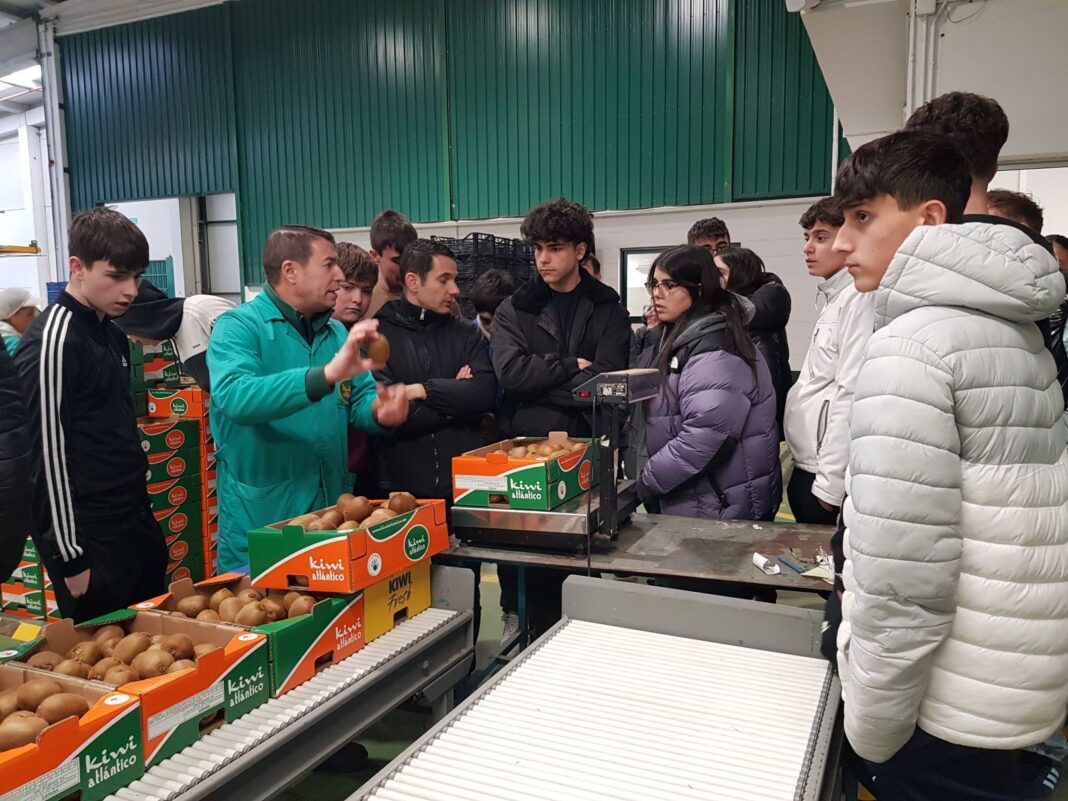 Posteriormente, trasladáronse a Ribadumia para visitar as instalacións de Kiwi atlántico para coñecer o traballo desta empresa que conta con 35 anos de experiencia no sector de cultivo e comercialización de kiwi. Neste sentido, os estudantes descubriron as potencialidades e particularidades que Galicia segue a ter na produción deste rendible froito.