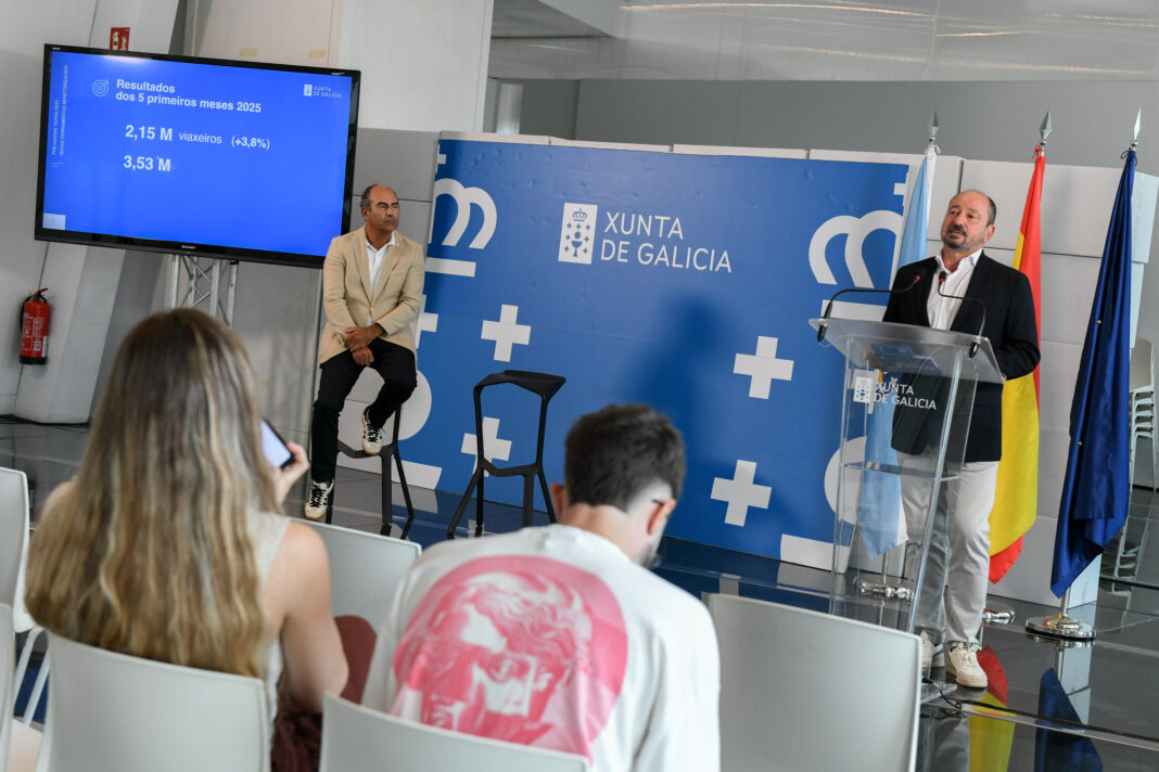O director de Turismo de Galicia tamén fixo unha valoración dos datos turísticos do que vai de ano. Así, destacou que “Galicia recibiu de xaneiro a maio máis de 2,1 millóns de viaxeiros que fixeron máis de 3,5 millóns de noites”, o que se traduce nun incremento do 4% en viaxeiros e case do 3% en demanda. “Ambas cifras son máximos históricos”, subliñou.