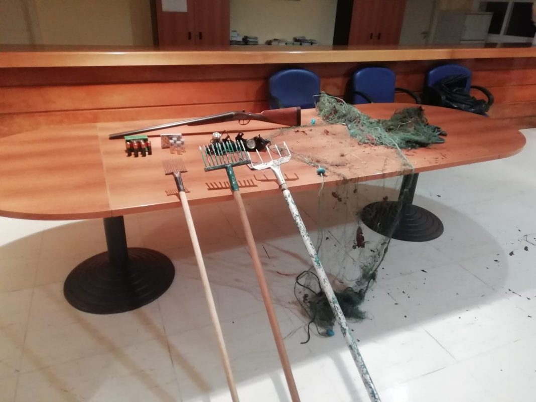 • A raíz do operativo tramitáronse tres denuncias por posesión de artes de pesca prohibidas e tenencia dunha escopeta sen a correspondente documentación