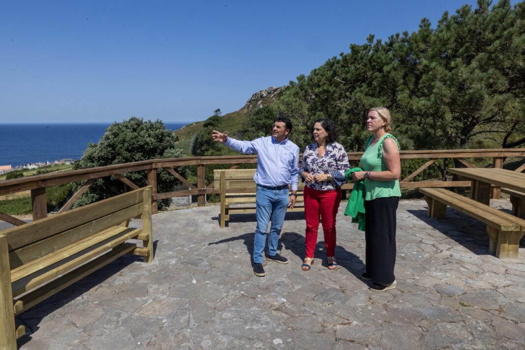 A delegada referiuse tamén ao miradoiro da Insua, localizado no cruzamento dos viais que conducen ao cemiterio municipal e ao faro, que conta cun merendeiro, cunha superficie aproximada dun 125 m². O proxecto contempla o cambio das mesas e bancos existentes e o tratamento mediante verniz para exterior e intemperie da talanquera existente.