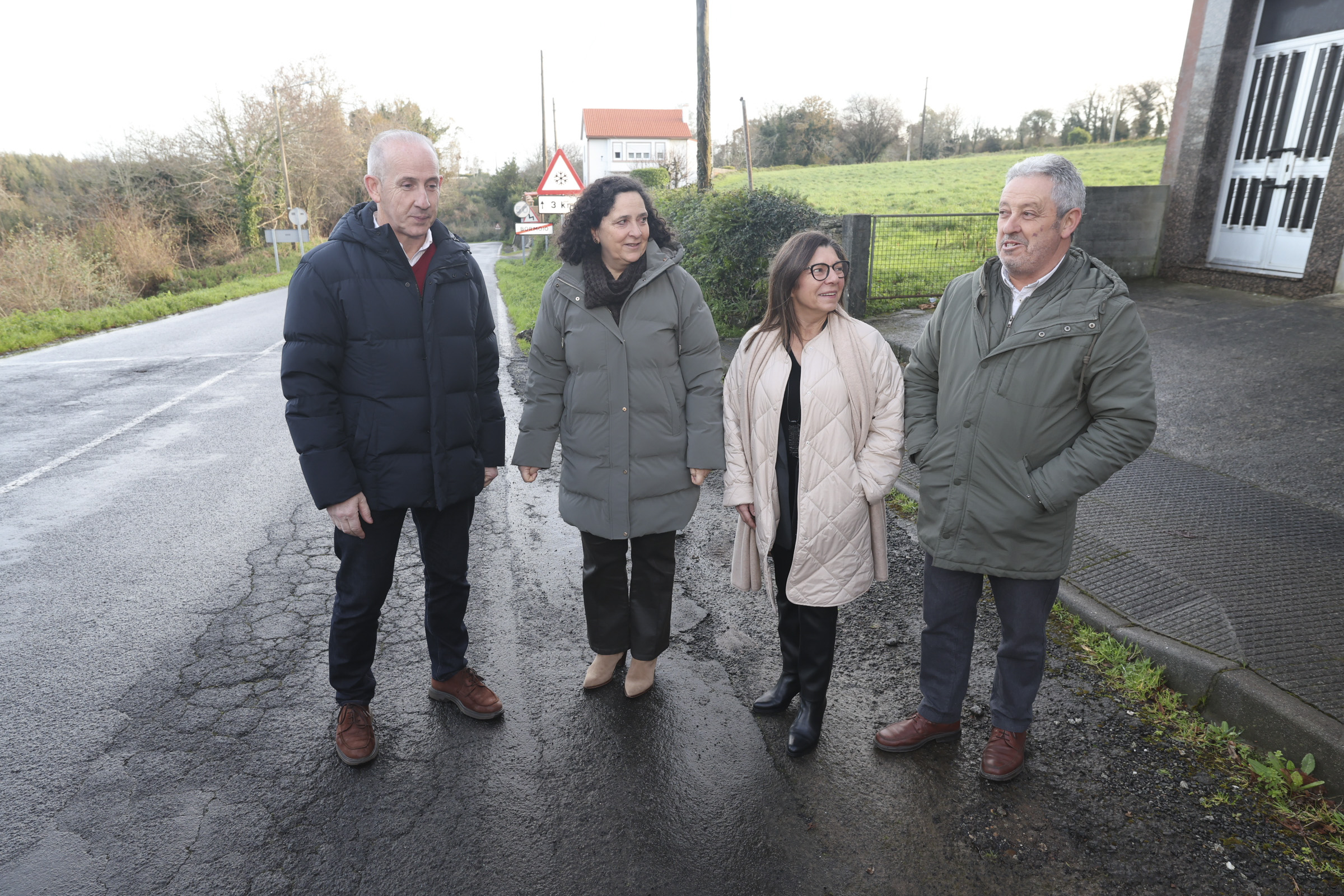 A delegada da Xunta, Belén do Campo, acompañada polo alcalde de Coristanco, Juan Carlos García, e pola directora territorial da Consellería de Vivenda e Planificación de Infraestruturas, Begoña Freire, visitaron a zona na que se vai a realizar o acondicionamento da estrada AC-421 na Agualada, que suporá un investimento de case 764.000€. O proxecto aprobouse recentemente no Consello da Xunta.
