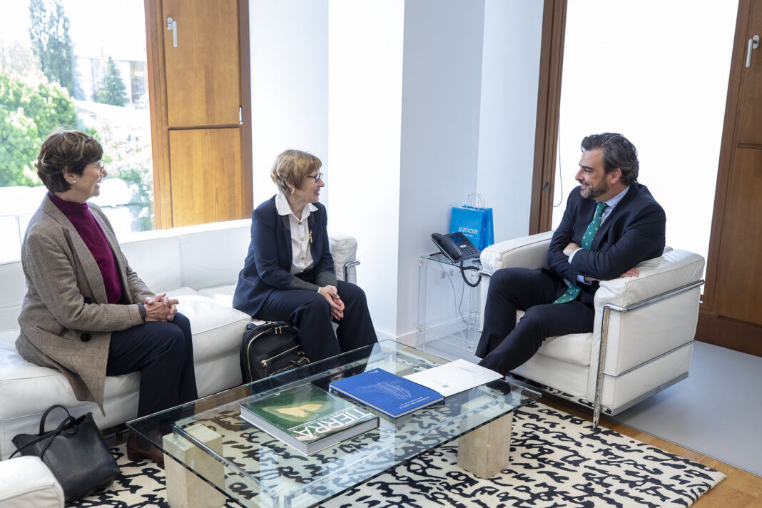 O conselleiro de Presidencia, Xustiza e Deportes, Diego calvo, mantivo hoxe unha reunión coa consulesa xeral da República Francesa en Bilbao, Marianne Carré, na que se abordaron as relacións bilaterais entre Galicia e Francia, así como a situación dos cidadáns franceses na comunidade galega, un colectivo estimado en máis de 1.600 persoas. Tamén se tratou a próxima visita do embaixador da República Francesa en España, Jean-Michel Casa, e outras cuestións xerais, como as eleccións europeas que se celebrarán en xuño deste ano.
