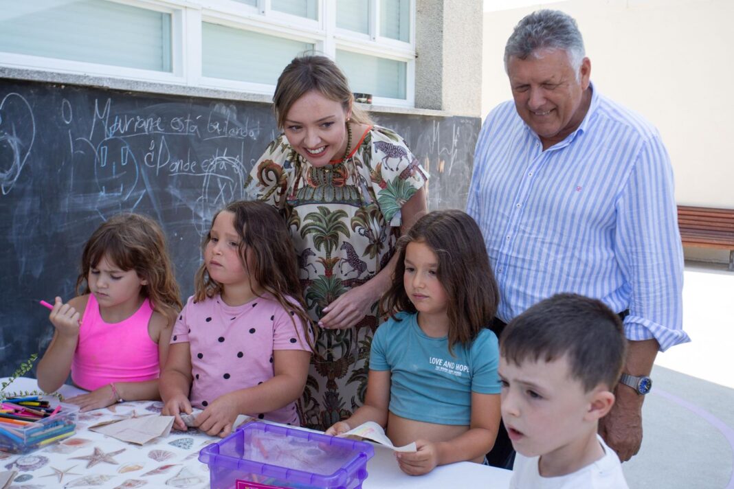 A conselleira de Política Social e Igualdade, Fabiola García, acompañada do alcalde de Sanxenxo, Telmo Martín, visitou esta mañá aos rapaces que participan no campamento ‘Sanxenxo concilia’ no CEIP A Florida. É o centro onde se desenvolve este programa de conciliación que recibe financiamento da Xunta de Galicia a través do Plan Corresponsables.